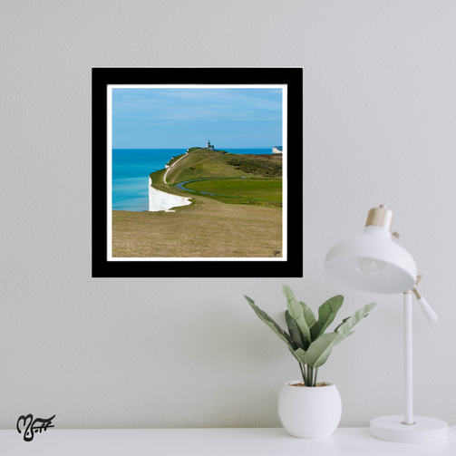 This framed hand-signed print is sure to bring the beauty and tranquility of a summer's day at Beachy Head East Sussex into your home. Featuring a stunning blue sky view over the iconic white cliffs, this print is sure to bring a touch of the outdoors inside.