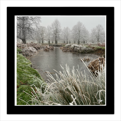 Witness nature's strength in this stunning framed, hand-signed print, Bushy Park 4. Captured during a freezing winter's morning, the -6 degree temperature transformed the river and surroundings into a beautiful, icy landscape. Discover the intricate details of this serene moment and be inspired by the beauty and power of nature.