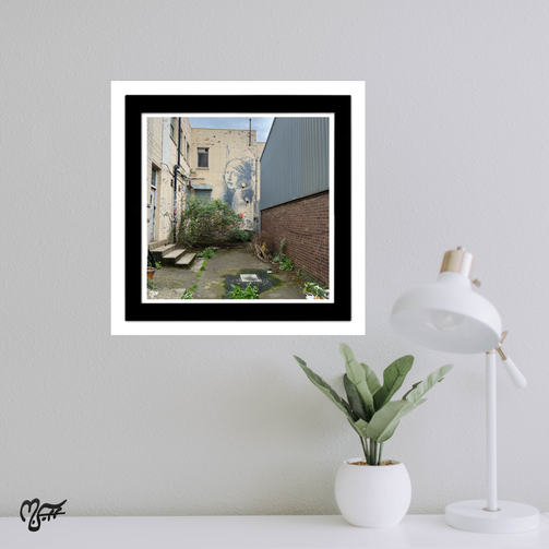 This framed, hand-signed print by Mrs Faff is from her Bristol Walkabout series of images. This photo is of Banksy's unique take on Johannes Vermeer's classic painting, Girl with the Pearl Earring. Set amid an overgrown courtyard, this contemporary graffiti art gives the image an urban feel.