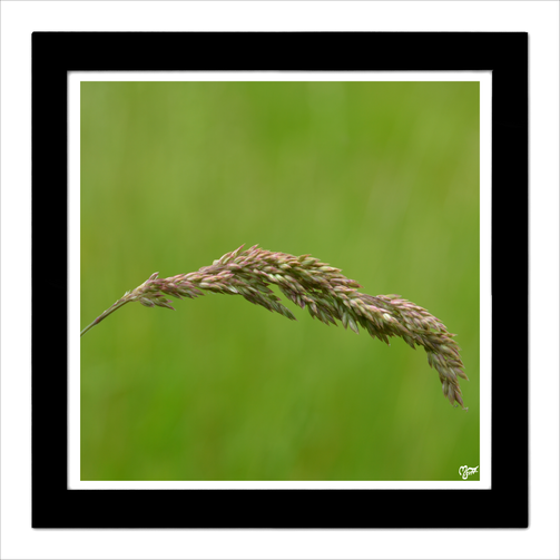 This framed hand-signed print is sure to catch the eye of admirers. Featuring a single image of a grass seed on a green background, the print is sure to make a simple statement in any room. Add a touch of serenity and nature to your home with this unique piece of art.